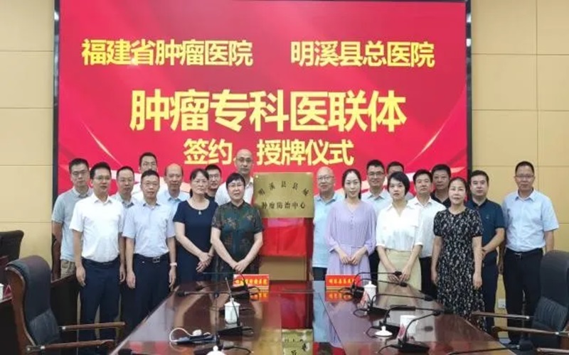 为推动省级优质医疗资源下沉基层,提升基层诊疗水平,更好地服务基层百姓,福建省肿瘤医院与明溪县总医院现场签约,并举行“肿瘤专科医联体”授牌仪式。福建中医药大学附属第二人民医院的省早期肺癌中西医结合诊疗临床医学研究中心团队,与明溪县中医院开展早期肺癌(肺结节)筛查干预协作,现场签署合作协议并授牌。