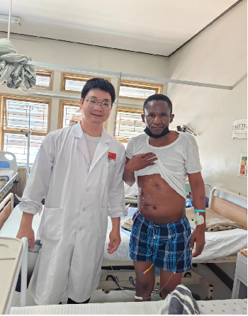 由于仰加圭转诊医院缺乏激光碎石设备,以往都将这类患者转到私人医院或者对其行肾切除术。此次,胡医生克服困难,充分运用医院现有设备,为病人设计并实施了腹腔镜肾盂切开取石术,手术十分顺利,患者术后效果较好,恢复很快。