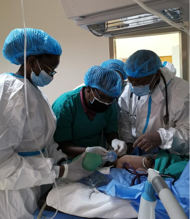 2025年2月26日下午16时20分,博茨瓦纳玛丽娜公主医院产科医护人员夜班交班正在进行,产房门外急救车呼叫急诊转院一名孕妇,可疑脐带脱垂。产科夜班当班的专科医生是来自第17批援博茨瓦纳医疗队的妇产科主任医师罗金英。接到通知后,罗主任立即组织6名产科医护人员组成快速反应团队(Rapid response team, RRT)。