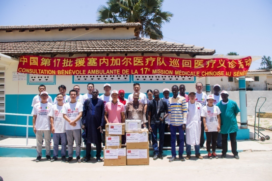 2019年4月12日,第17批援塞医疗队在我驻塞使馆人员带领下,经过16小时长途跋涉,于13日中午抵达济金绍尔市。当地百姓载歌载舞,夹道欢迎中国医疗队。队员们不顾旅途辛劳,马不停蹄地在济金绍尔省卫生中心、Kaour乡镇卫生所、Niassia乡镇卫生所开展了三场义诊活动。他们顶着40度的高温持续工作,汗水浸透了衣裳,背上结起了厚厚的盐霜。