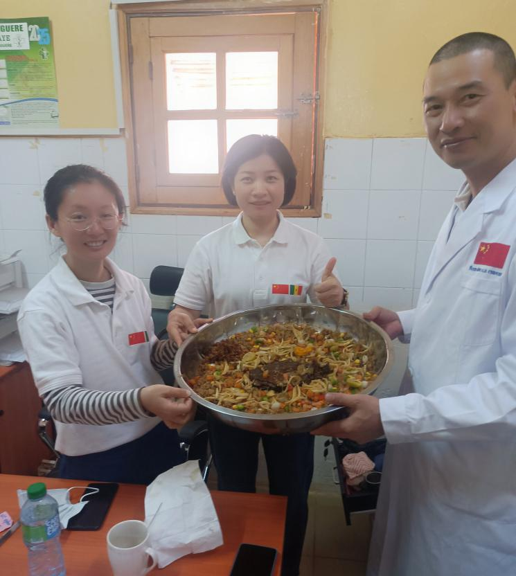 晌午时分,蝉鸣声裹着热浪涌进了室内,此时的诊室格外闷热。此刻的我正俯身核对病人信息,忽然门外突然飘进一阵浓郁的香气。抬头看时,一个粗壮的青年男子头顶着一个大铁盆出现在我面前。“这不是刚才那个小女孩的父亲吗?”我心里想着。他咧嘴一笑,缺了门牙的嘴角高高扬起:“Amis chinois, reposez-vous. Merci beaucoup!”(中国朋友,歇歇吧。非常感谢你们!)。“Merci”(谢谢)他身后探出个小脑袋,上午发烧的小女孩声音中带着丝丝羞涩。我慌忙接过他递来的大铁盆,指尖触到盆沿时还有些烫手。